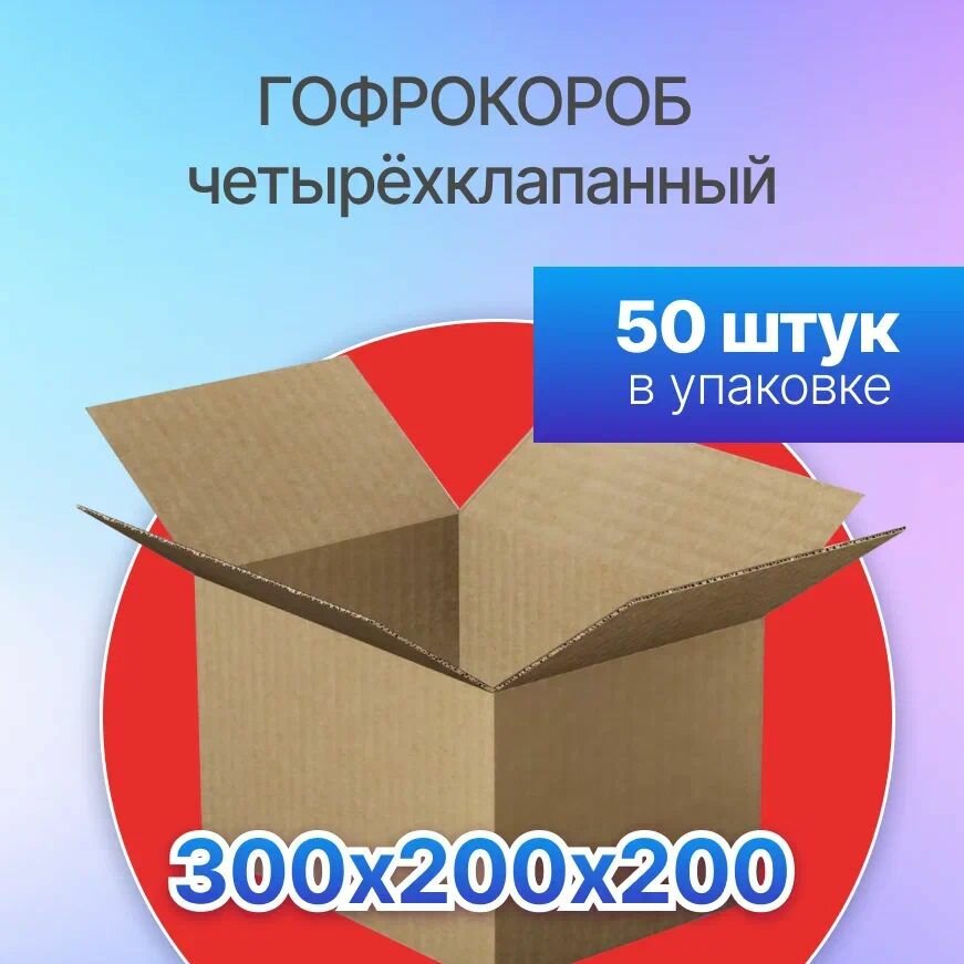 Купить Коробка для посылок картонная четырехклапанная 300х200х200 мм, Т-23, 50 штук с доставкой по всей России.