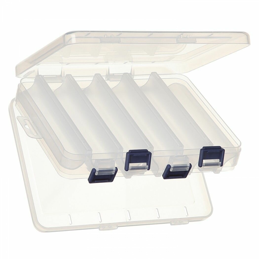 Meiho Reversible 145 — не совсем обычная рыболовная коробка среднего размера. Дело в том, что она имеет треугольные в сечении ячейки и открывается с двух сторон. Такой подход позволил значительно сократить толщину коробки, используя ее внутреннее пространство максимально эффективно. В этой коробке очень удобно хранить рыболовные приманки с длинным узким корпусом, например, воблеры минноу, узкие колеблющиеся блесны, различные морские пилькеры и приманки для ловли кальмаров. В узкой части ячеек такой коробки отлично помещаются крючки тройников, и приманка занимает меньше места. Крышки коробок этой серии имеют простой и надежный механизм фиксации. Он представлен двумя защелками из прочного ABS-пластика, который с легкостью открывается и закрывается одним движением. Коробка выполнена в прозрачном варианте. Это позволяет рассмотреть ее содержимое, не открывая крышку.