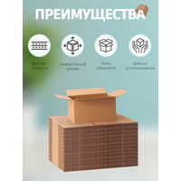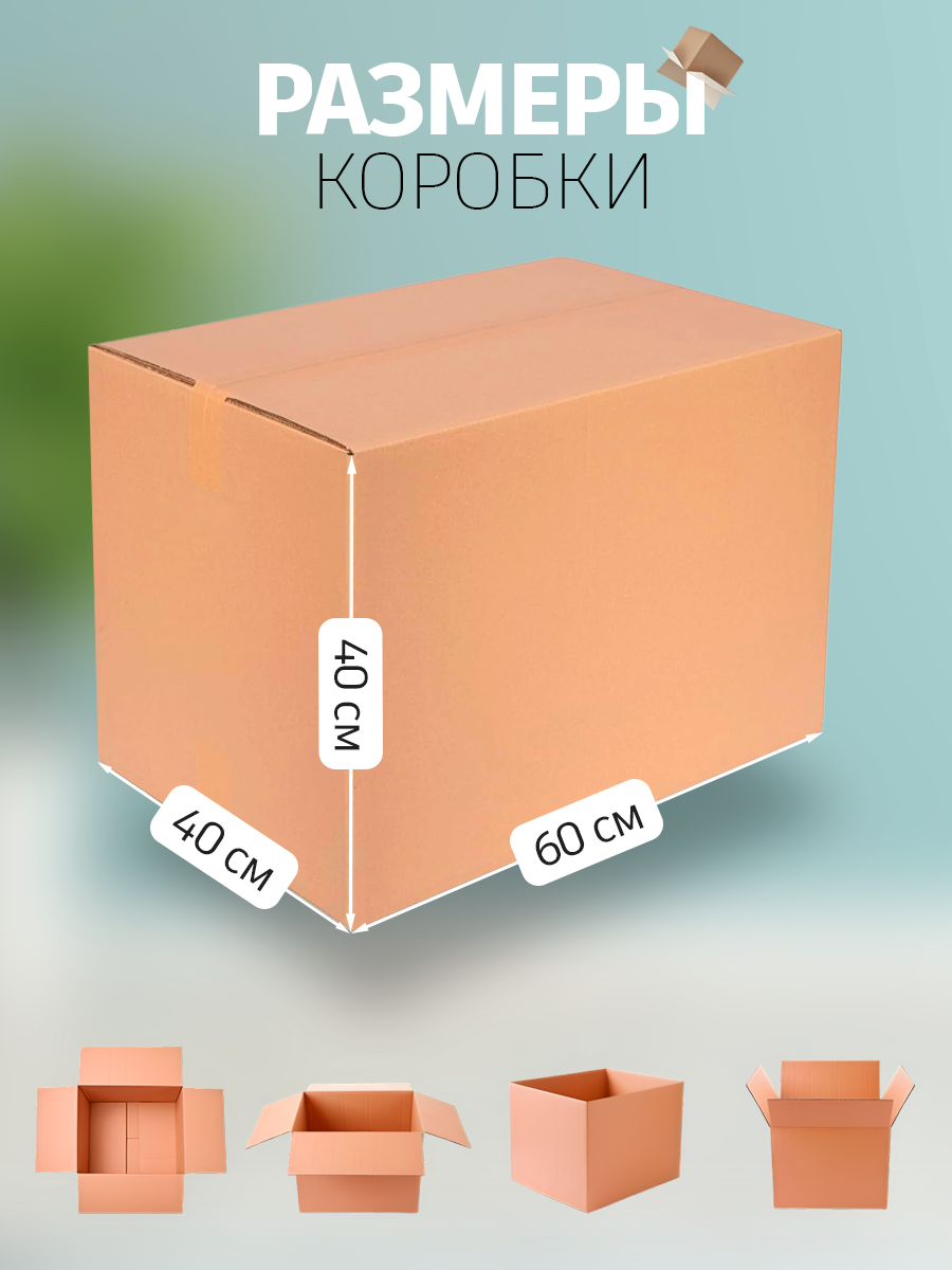 Коробка из картона имеет оптимальный размер: вместительная и при этом не громоздкая. Размер коробки подходит для поставок на маркетплейсы и для отправки транспортными компаниями. Размер короба: длина 60 см, ширина 40 см, высота 40 см. Коробки выдерживают до 20 кг.