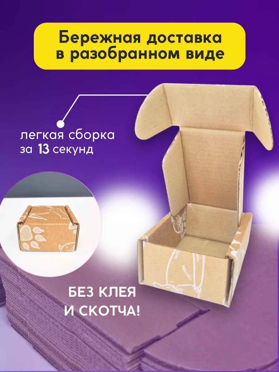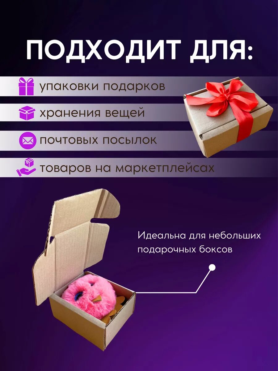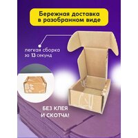 Коробка картонная самосборная подарочная - идеальное решение для упаковки мелких предметов или подарков. Самый востребованный оптимальный размер. Размер внешний 12,5х11х 6 см, внутренний 12 х90х5.5 см . Коробка изготовлена из высококачественного 3-х слойного гофрокартона марки Т24, имеет подготовленный сгиб, позволяющий легко и быстро собрать готовую коробку. Легкая в сборке и удобная в использовании, она поможет защитить содержимое от повреждений и сохранит его в целости. Просто сложите ее по линиям и закрепите клапаны - и ваша коробка готова к использованию. Название говорит об ее ключевой особенности: собрать изделие можно в два счета, без использования клея, степлера и скотча. Благодаря экологичности она может использоваться в различных случаях: для хранения вещей, переезда, курьерской доставки. Благодаря плотному картону и удобной конструкции с крышкой, легко собирать и транспортировать. А если потребуется подчеркнуть индивидуальность, то поверхность гофрокартона весьма лояльна ко всем проявлениям полиграфического оформления. Можно нанести рисунок, наклеить фирменный логотип или написать послание адресату. Для оформления коробочки можно использовать бумагу тишью, стикеры, наклейки, ленты и пр. Благодаря амортизирующим свойствам гофрокартона, содержимое будет в безопасности от внешних нагрузок. Подойдет для поставщиков маркетплейсов или рукодельниц, которые ищут надежную упаковку для своих поделок. Если вы хотите отправить почтовое отправление небольшого размера, то такая картонная коробочка – отличный вариант. Благодаря специальному сгибу и «ушкам» можно легко и быстро собрать. Не требует никакой склейки, собирается просто и быстро. Картонная коробочка станет отличным решением для перевозки мелких бытовых предметов и аксессуаров. Удобная, практичная и экономичная - такая коробка станет незаменимым помощником в упаковке и хранении различных мелочей.