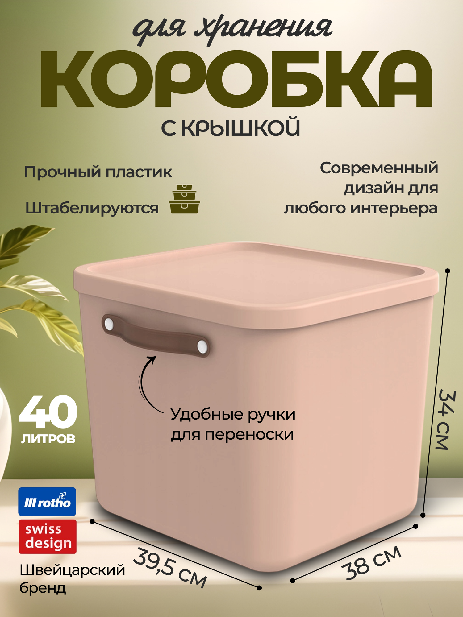 Коробка ящик для хранения вещей, одежды, пластиковая с крышкой и ручкой, Rotho Maloja, розовый, 40 л.: сравнение цен, характеристики, фото, актуальное наличие и цены.