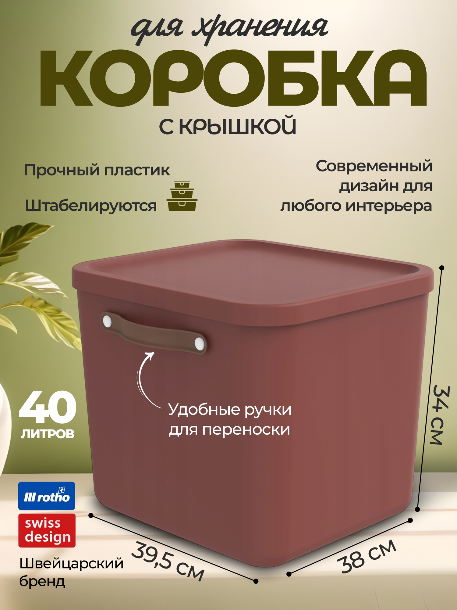 Коробка ящик для хранения вещей, одежды, пластиковая с крышкой и ручкой, Rotho Maloja, терракот, 40 л.: сравнение цен, характеристики, фото, актуальное наличие и цены.