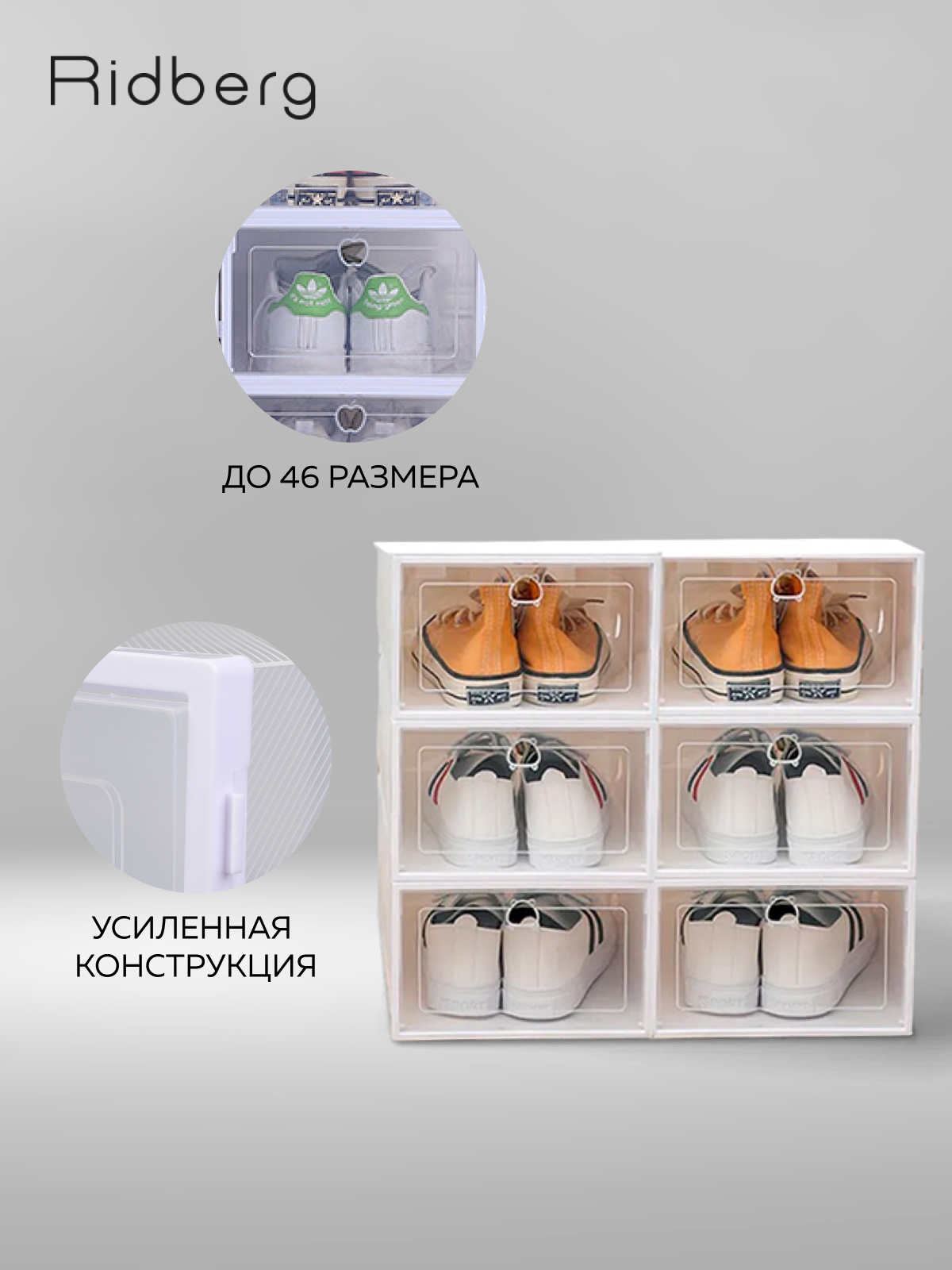 Купить Коробки для хранения обуви Ridberg набор 6 шт, ящики для хранения вещей (прозрачные) с доставкой по всей России.
