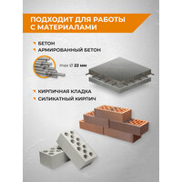 - Назначение: для сверления отверстий в армированном бетоне с максимальным диаметром арматуры 22 мм, бетоне, кирпиче, силикатном кирпиче, камне.