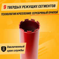 Такая технология крепления сегментов, как “серебряный припой”, увеличивает срок службы коронки, обеспечивая ее надежность. Работают с такими материалами, как бетон, железобетон, камень, керамогранит, кирпич, газоблок и пеноблок. Режет даже армированный бетон! Устойчивы к высоким температурам.