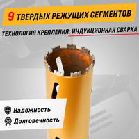 Алмазные коронки для сухого сверления используется с алмазными дрелями при сухом сверлении. Напаянные лазерным способом алмазные сегменты обеспечивают повышенную скорость сверления и большой ресурс работы коронки.
