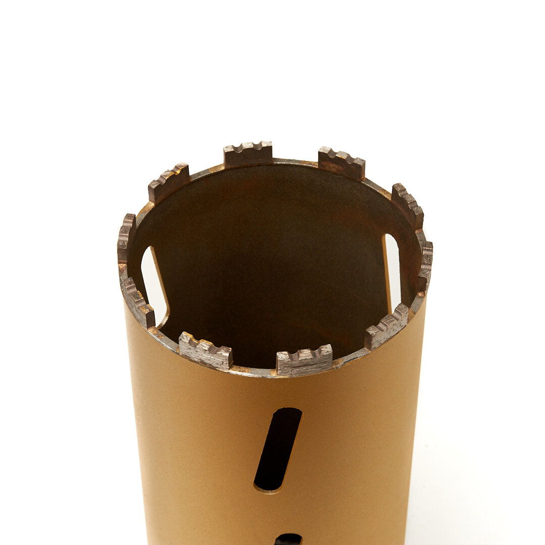 Алмазные коронки для сухого сверления используется с алмазными дрелями при сухом сверлении. Напаянные лазерным способом алмазные сегменты обеспечивают повышенную скорость сверления и большой ресурс работы коронки.
