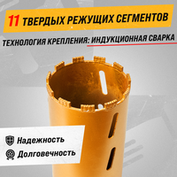 Алмазные коронки для сухого сверления используется с алмазными дрелями при сухом сверлении. Напаянные лазерным способом алмазные сегменты обеспечивают повышенную скорость сверления и большой ресурс работы коронки.