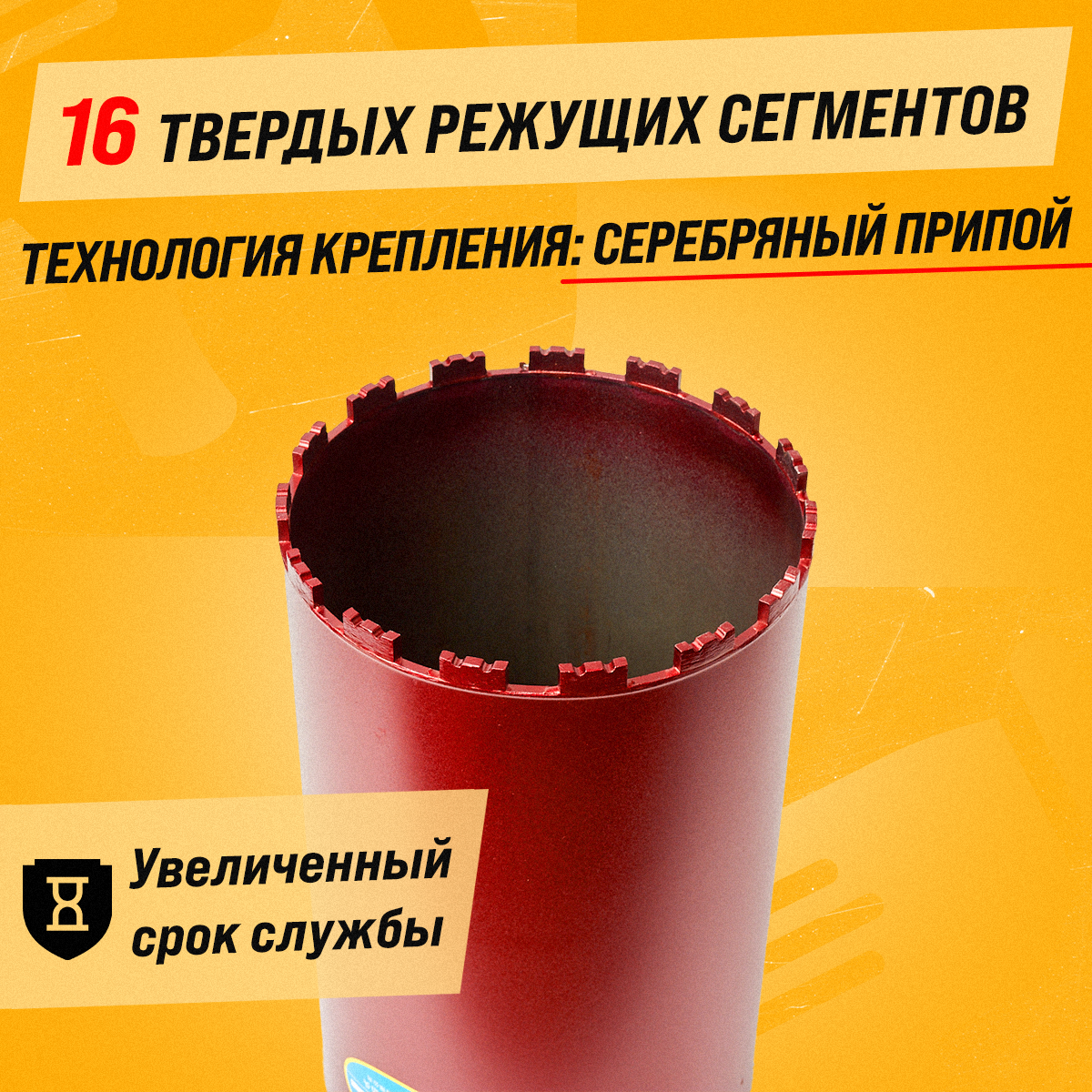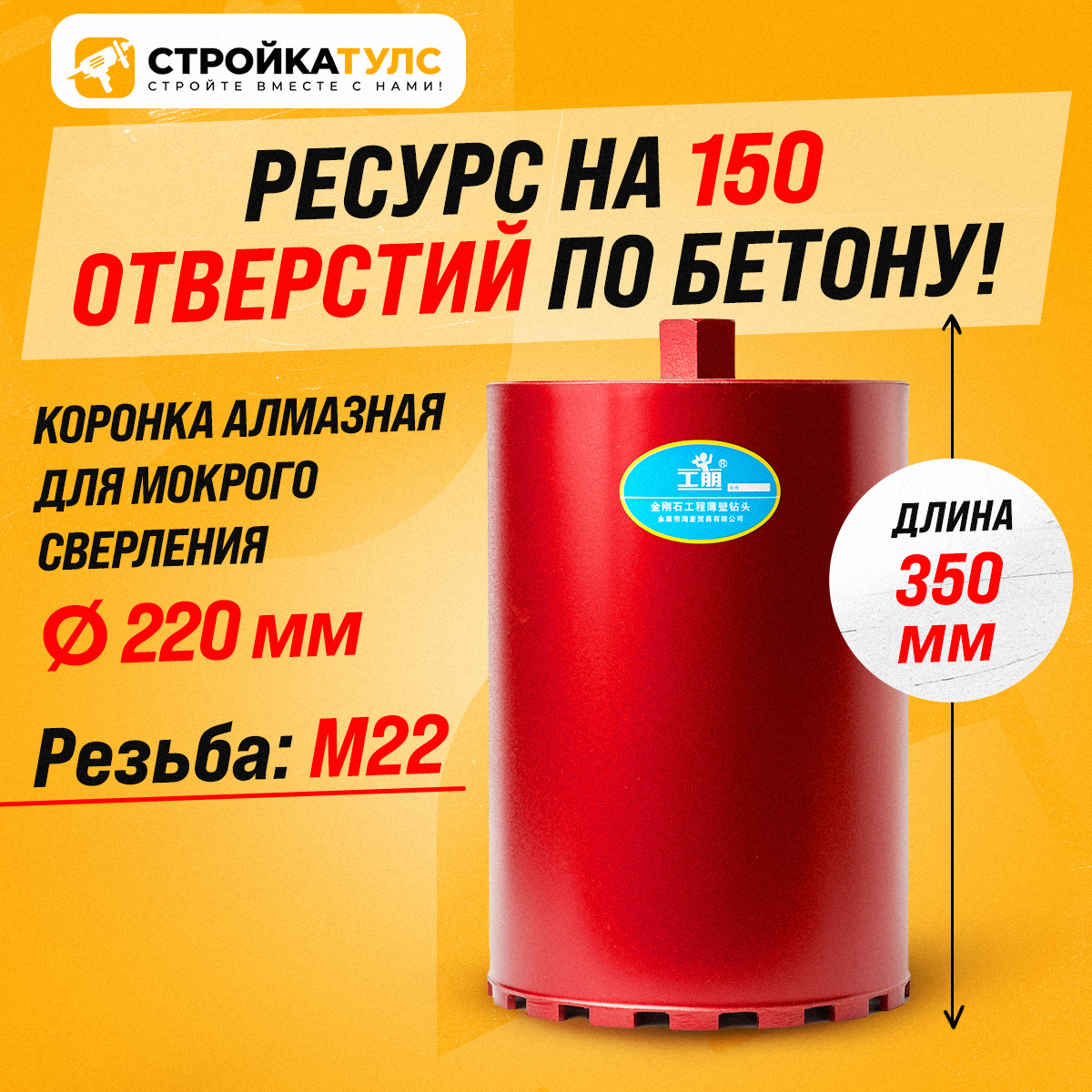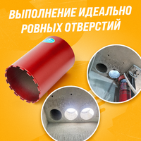 Высококачественная алмазная коронка для мокрого сверления. Вода эффективно охлаждает коронку и способствует выведению отработанного материала из области реза, увеличивая производительность и срок службы коронки. Длина алмазных коронок для мокрого бурения составляет 350 мм. Работают с такими материалами, как бетон, железобетон, кирпич, пеноблок с использованием воды. У коронок мокрорезов выше ресурс, чем у сухорезов. Хвостовик: М22х2,5 мм - не нужен адаптер при работе с китайскими дрелями. Протестированы профессионалами, легко справляются даже с сильно армированным бетоном. Подходит для работ электриков, сантехников, кондиционерщиков, вентиляционщиков и т. д, а также для сквозных отверстий