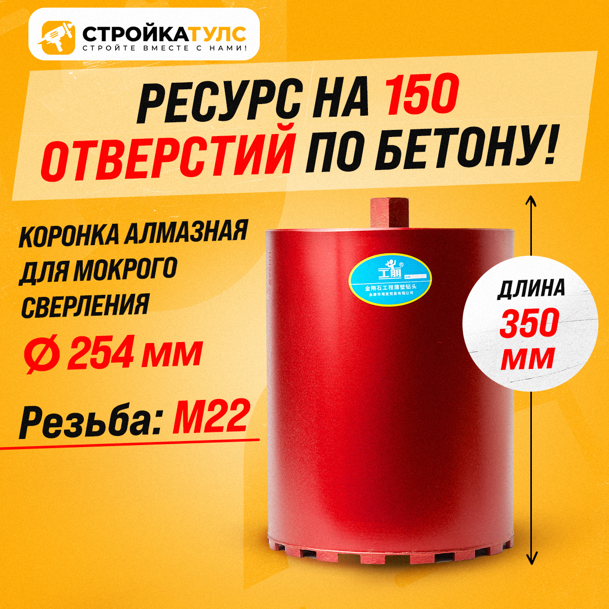Коронка алмазная М22 254*350 мм мокрорез по бетону, кирпичу для сухого и мокрого бурения: сравнение цен, характеристики, фото, актуальное наличие и цены.