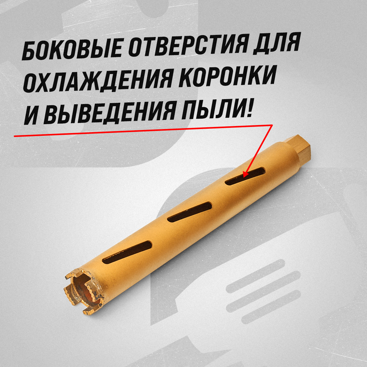 Алмазные коронки для сухого сверления – инструмент, который используется для сверления точных и аккуратных отверстий в различных поверхностях, на объектах где нет подвода постоянной воды и мокрый рез просто невозможен.