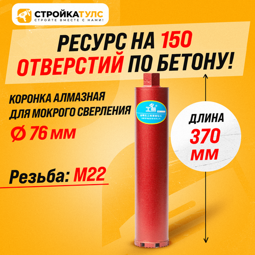 Высококачественная алмазная коронка для мокрого сверления. Вода эффективно охлаждает коронку и способствует выведению отработанного материала из области реза, увеличивая производительность и срок службы коронки. Длина алмазных коронок для мокрого бурения составляет 370 мм. Работают с такими материалами, как бетон, железобетон, кирпич, пеноблок с использованием воды. У коронок мокрорезов выше ресурс, чем у сухорезов. Хвостовик: М22х2,5 мм - не нужен адаптер при работе с китайскими дрелями. Протестированы профессионалами, легко справляются даже с сильно армированным бетоном. Подходит для работ электриков, сантехников, кондиционерщиков, вентиляционщиков и т. д, а также для сквозных отверстий