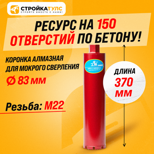 Коронка алмазная M22 83*370 мм по бетону мокрорез Stroykatools: сравнение цен, характеристики, фото, актуальное наличие и цены.