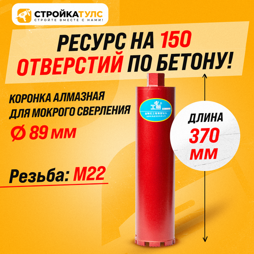 Высококачественная алмазная коронка для мокрого сверления. Вода эффективно охлаждает коронку и способствует выведению отработанного материала из области реза, увеличивая производительность и срок службы коронки. Длина алмазных коронок для мокрого бурения составляет 370 мм. Работают с такими материалами, как бетон, железобетон, кирпич, пеноблок с использованием воды. У коронок мокрорезов выше ресурс, чем у сухорезов. Хвостовик: М22х2,5 мм - не нужен адаптер при работе с китайскими дрелями. Протестированы профессионалами, легко справляются даже с сильно армированным бетоном. Подходит для работ электриков, сантехников, кондиционерщиков, вентиляционщиков и т. д, а также для сквозных отверстий