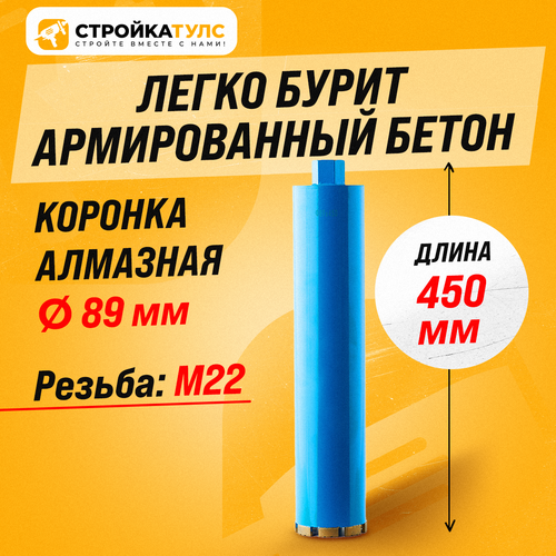 Коронка алмазная M22 89*450 мм по бетону сухорез Stroykatools: сравнение цен, характеристики, фото, актуальное наличие и цены.