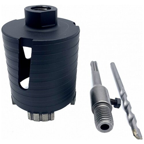 В комплект входит адаптер с хвостовиком SDS+ и центровочным сверлом, позволяющим надежно фиксировать коронку во время начала сверления.