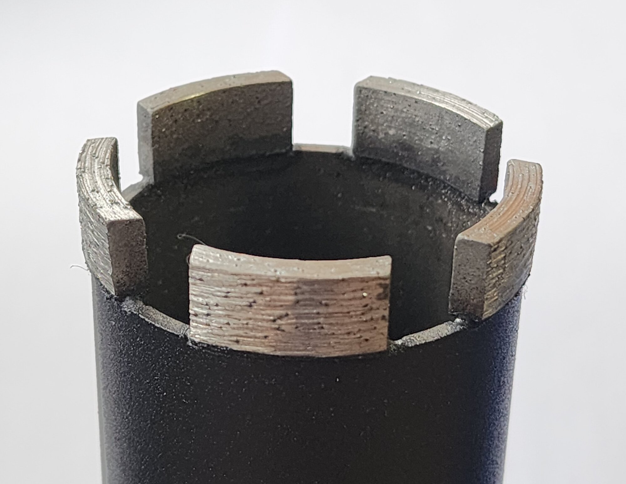 Алмазная коронка (бур) Diamond Hit с сегментом Т(твердый) разработана для высверливания отверстий с повышеным ресурсом в абразивном материале, армированном бетоне, бетоне, кирпиче без использования охлаждающей жидкости и доп. вскрытия сегментов в процессе строительных работ. Устройство коронки и система микро удара высокоэффективно отводят пыль из зоны реза и предотвращают заклинивание коронки в процессе сверления.