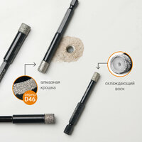 - Назначение: для сверления отверстий в керамике, керамограните, натуральном камне;