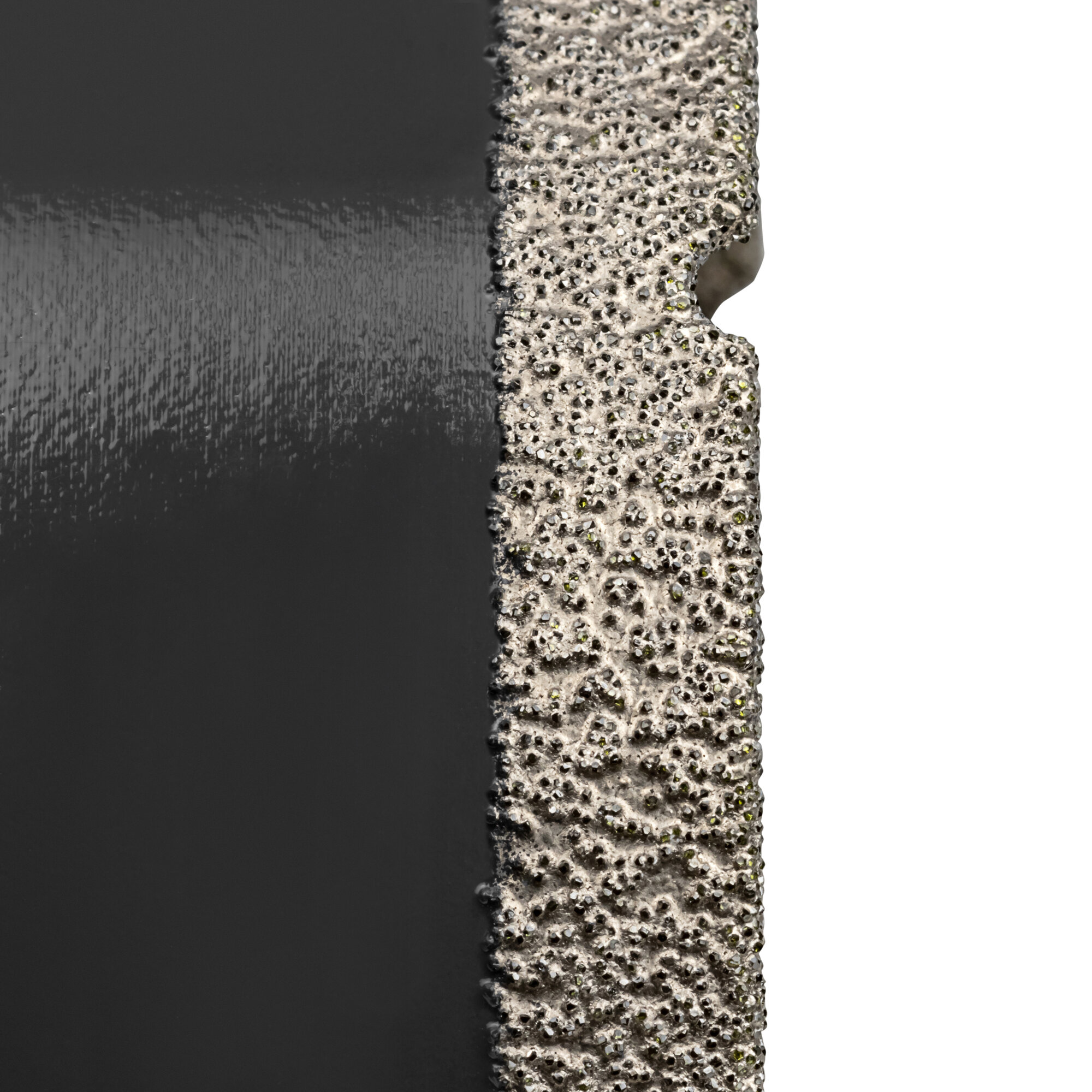 преимущества: Высокая скорость сверления Подходят как для сухого, так и мокрого просверливания керамических материалов, греса, керамогранита Рабочая скорость 10000-14000 оборотов в минуту. Соединение М14. Коронки предназначены для использования с УШМ Компенсационные пропилы в теле сверла предотвращают выгибание корпуса при нагреве и позволяют улучшать отвод шлама из зоны резания Напайка высотой 10мм (для возможности рассверливать отверстия) Большой ресурс благодаря вакуумной спайке и высокому качеству алмазов