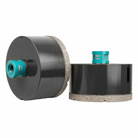 Алмазные коронки BIHUI Dry Gres рекомендуется для просверливания любого типа керамической плитки, особенно керамогранита, а также других облицовочных материалов, таких как мрамор и гранит. При производстве алмазных коронок применяется технология вакуумной спайки алмазных частиц к зоне просверливания, которая увеличивает устойчивость к высоким температурам и трению и значительно увеличивает ресурс коронок. Алмазные коронки служат для сухого просверливания и крепятся напрямую к УШМ резьбой М14 или к безударной дрели с использованием адаптера. Максимальная скорость просверливания алмазными коронками составляет порядка 14000 об/мин. Средний ресурс коронок меняется в зависимости от их диаметра. Для коронок от Ø 6 до 12 мм средний ресурс составляет 25 отверстий. Для коронок от Ø 20 до 75 мм этот ресурс составляет 60 отверстий. Средний ресурс коронок всегда зависит от типа просверливаемого материала, его толщины и правильности просверливания и охлаждения коронки. Глубина просверливания коронками BIHUI Dry Gres составляет 36 мм. Внутри коронок Ø 6, 8, 10 и 12 мм содержится охлаждающий воск.