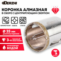 Коронка алмазная для керамики, стекла, керамогранита, 35 мм с центровочным сверлом, DERZHI: сравнение цен, характеристики, фото, актуальное наличие и цены.