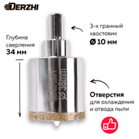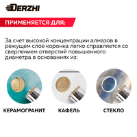 Коронка алмазная для керамики, стекла, керамогранита, 38 мм DERZHI, с центровочным сверлом: сравнение цен, характеристики, фото, актуальное наличие и цены.