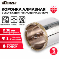 Купить Коронка алмазная для керамики, стекла, керамогранита, 38 мм DERZHI, с центровочным сверлом с доставкой по всей России.