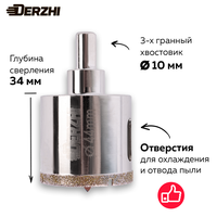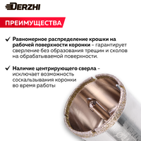 Коронка алмазная для керамики, стекла, керамогранита, 44 мм DERZHI, с центровочным сверлом: сравнение цен, характеристики, фото, актуальное наличие и цены.