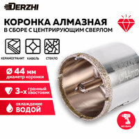 Купить Коронка алмазная для керамики, стекла, керамогранита, 44 мм DERZHI, с центровочным сверлом с доставкой по всей России.