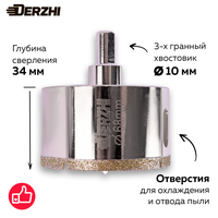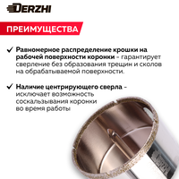 Коронка алмазная для керамики, стекла, керамогранита, 68 мм DERZHI, с центровочным сверлом: сравнение цен, характеристики, фото, актуальное наличие и цены.