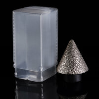 Коронка алмазная конусная (сверло шарошка алмазное коническое) повышенной износостойкости способна растачивать отверстия от 2мм до 38мм. Используется для увеличения диаметра отверстий в керамограните, граните, мраморе, твердой керамике с подшлифовкой боковой рабочей поверхности. Благодаря конусовидной форме, легко снимает фаску на неровных краях отверстий. Снижает напряжение и риск растрескивания широкоформатной плитки после просверливания. Также используется для снятия фаски и сглаживания краёв отверстий. Благодаря ей, можно сделать практически идеальное отверстие без сколов. Внимание! Эта не фреза для бурения, она не делает отверстия в плитке, а только их обрабатывает и растачивает.