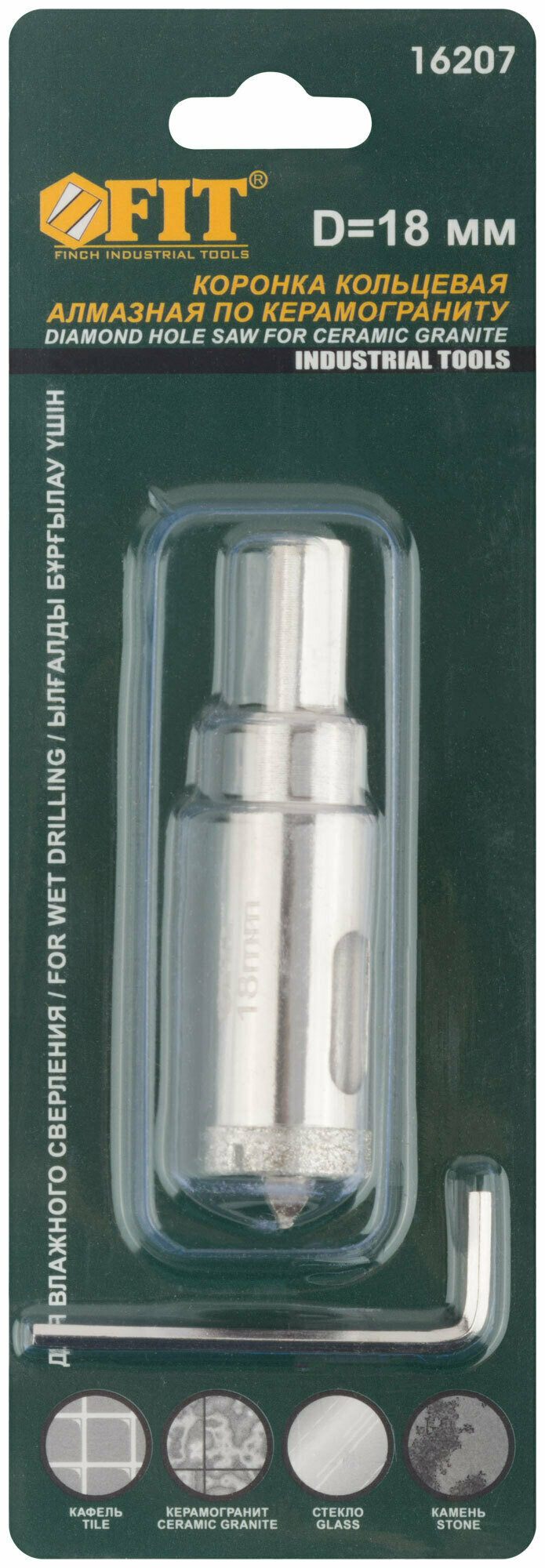 Коронка кольцевая по керамограниту, камню и кафелю алмазная с центровочным сверлом, для дрели, влажное сверление FIT 18х67 мм: сравнение цен, характеристики, фото, актуальное наличие и цены.