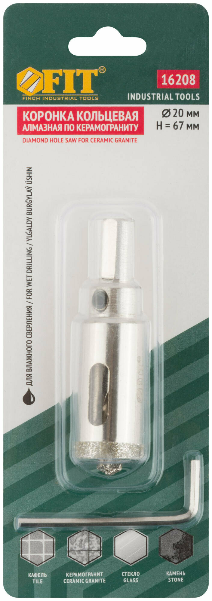 Коронка кольцевая по керамограниту, камню и кафелю алмазная с центровочным сверлом, для дрели, влажное сверление FIT 20х67 мм: сравнение цен, характеристики, фото, актуальное наличие и цены.