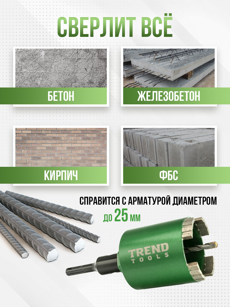 Купить Коронка по бетону и кирпичу алмазная Trend Tools 68 мм для подрозетников, держатель SDS Plus, верхнее пылеудаление с доставкой по всей России. Коронка по бетону и кирпичу алмазная Trend Tools 68 мм для подрозетников, держатель SDS Plus, верхнее пылеудаление: сравнение цен, характеристики, фото, актуальное наличие и цены.