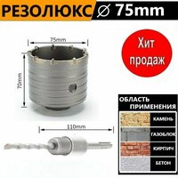 Купить Коронка твердосплавная по бетону 75 мм в сборе с хвостовиком SDS+ 110 мм резолюкс с доставкой по всей России.