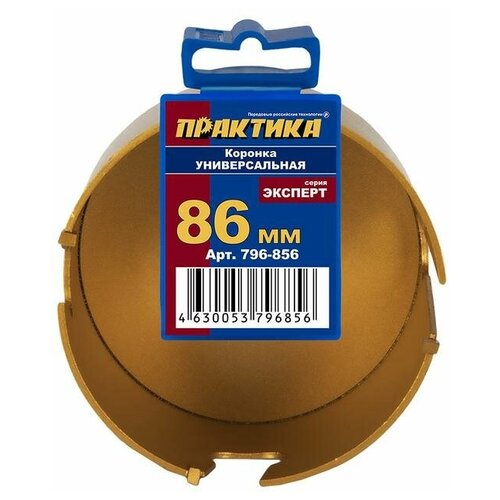 Коронка твердосплавная ПРАКТИКА 86мм универсальная. Коронка предназначены для безударного сверления отверстий в древесине, красном кирпиче (пустотелом и полнотелом), газобетоне, керамзитобетоне, гипсокартоне, ЦСП, OSB, фанере, поликарбонате и др. Коронки подходят для электриков, установщиков мебели, сантехников, монтажников вентиляционных и отопительных систем. Используются совместно с адаптерами. Адаптеры подбирается по размеру используемой коронки.