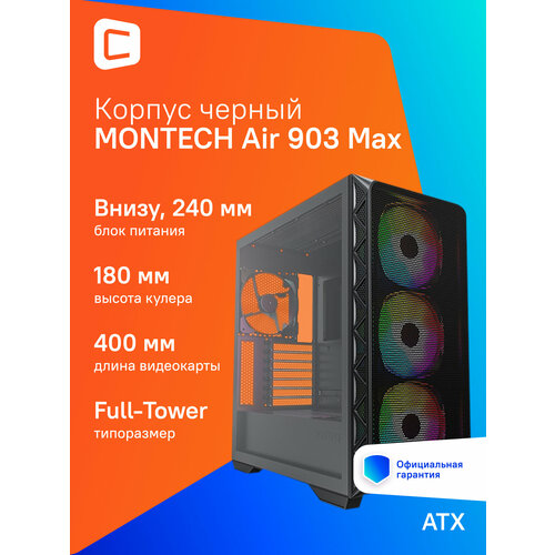 Товар Корпус Montech Air 903 Max черный без БП ATX 9x120mm 2x140mm 2xUSB3.0 audio bott PSU имеет широкий спектр преимуществ и характеристик