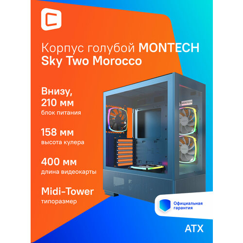 Товар Корпус Montech Sky Two Morocco голубой без БП ATX 3x140mm 2xUSB3.0 audio bott PSU имеет широкий спектр преимуществ и характеристик