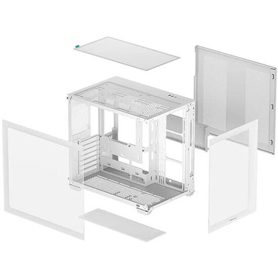 Корпус выполнен в белом цвете, что позволяет ему легко вписаться в любой интерьер. Боковая стенка изготовлена из стекла, что добавляет эстетики и позволяет наблюдать за работой компонентов. Лицевая стенка также выполнена из стекла, что обеспечивает отличный обзор и позволяет в полной мере оценить внешний вид вашей системы.