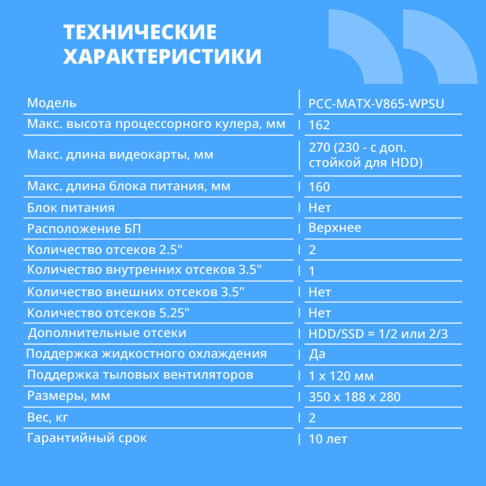 Корпус для компьютера CBR PCC-MATX-V865-WPSU, тип Minitower: сравнение цен, характеристики, фото, актуальное наличие и цены.