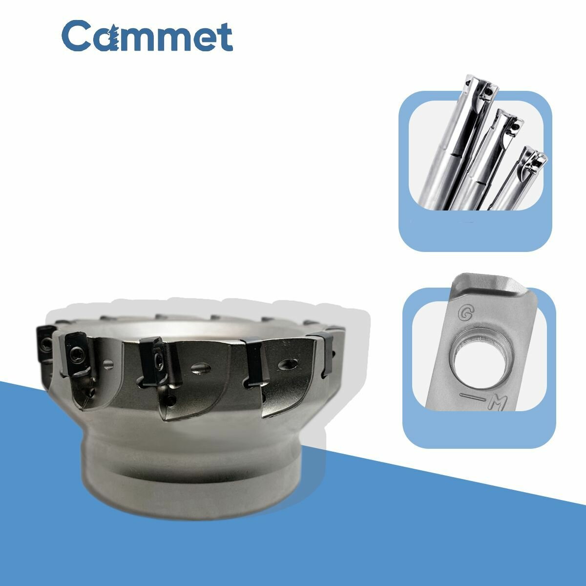 Фреза оснащена сменными пластинами LOGU0303, которые обеспечивают высокую производительность и точность обработки.