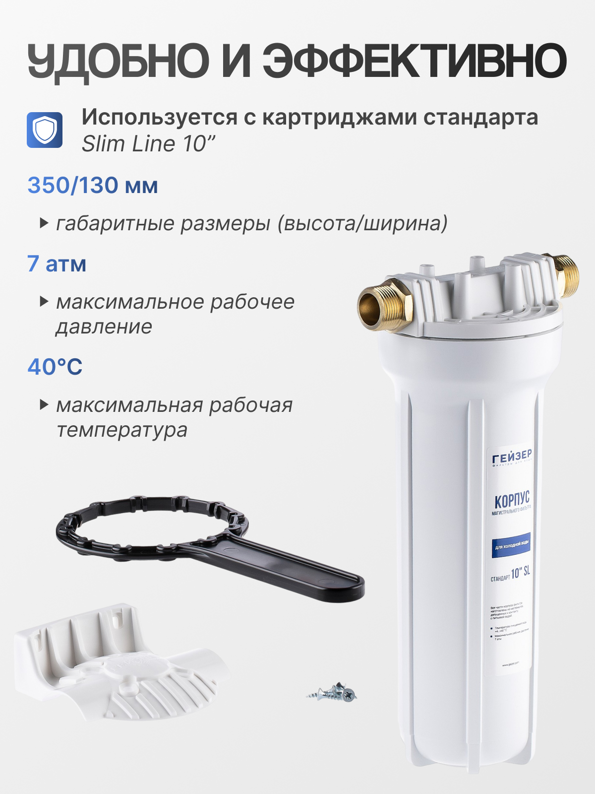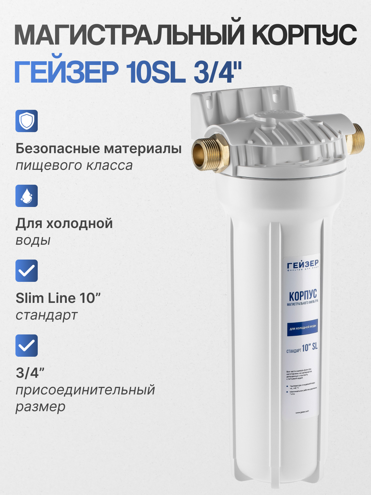 Купить Корпус Гейзер 10SL 3/4″, корпус магистрального фильтра, для холодной воды с доставкой по всей России. Корпус Гейзер 10SL 3/4″, корпус магистрального фильтра, для холодной воды: сравнение цен, характеристики, фото, актуальное наличие и цены.