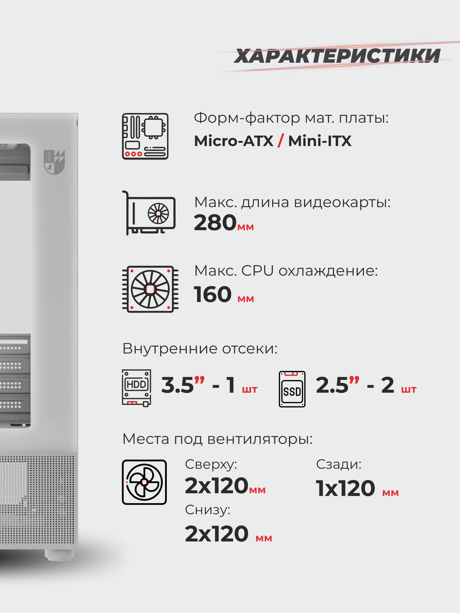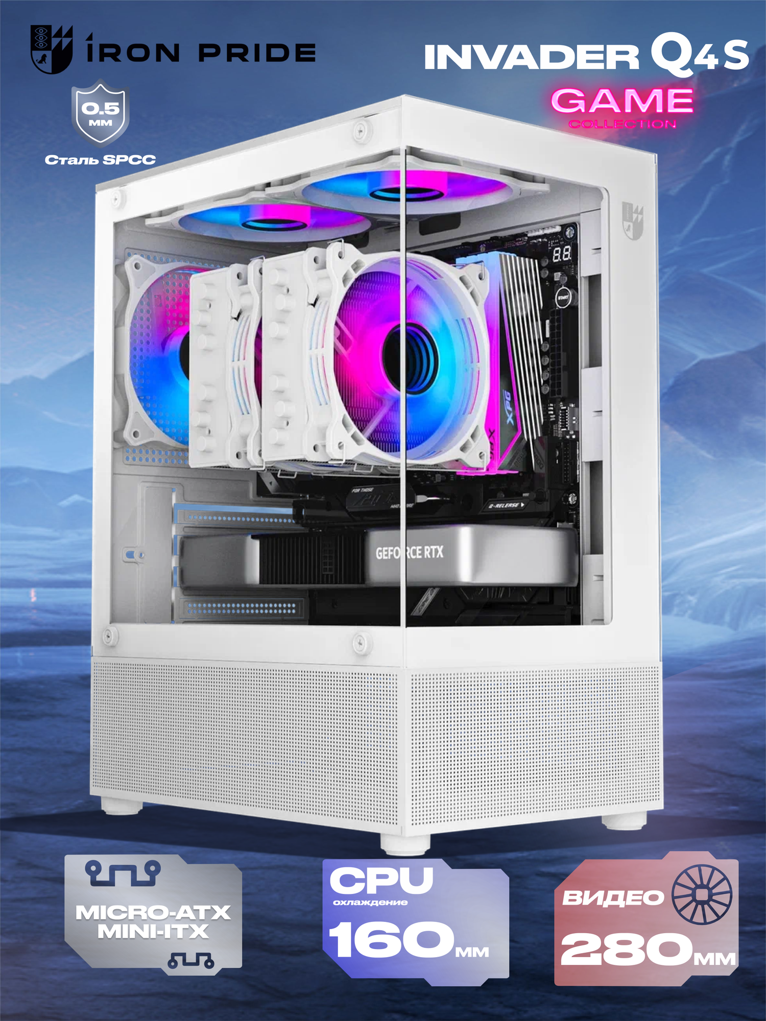 Корпус Invader Q4S + 3 ARGB вентилятора + закаленное стекло, Micro-ATX, Mini-ITX: сравнение цен, характеристики, фото, актуальное наличие и цены.