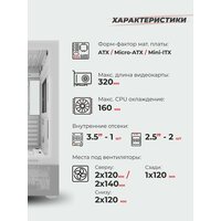 Корпус выполнен в белом цвете, что позволяет ему легко вписаться в любой интерьер. Лицевая панель и окно на боковой панели изготовлены из закаленного стекла, что придает корпусу дополнительную эстетическую привлекательность.