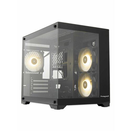 • Компактность: Несмотря на миниатюрный размер, корпус HSPD F330 предлагает достаточно пространства для создания мощной системы. • Стиль: Черный цвет корпуса в сочетании с панорамной боковой панелью из закаленного стекла делает его современным и стильным. • ARGB подсветка: 3 встроенных вентилятора с ARGB-подсветкой дают возможность создать красивую атмосферу в комнате. • Хорошая вентиляция: Встроенные вентиляторы и продуманная конструкция корпуса обеспечивают эффективное охлаждение компонентов.