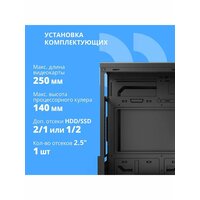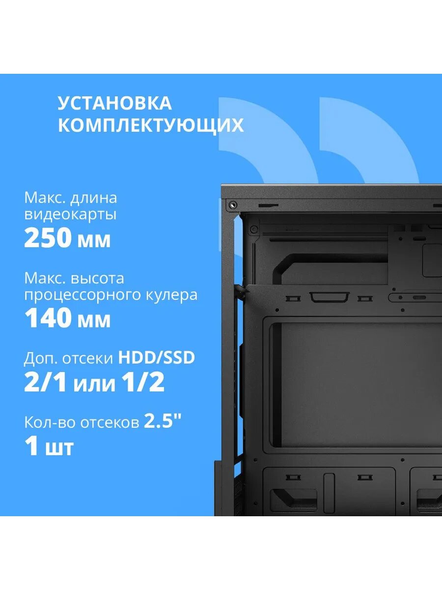 Корпус для ПК GameMax Nova N5 (Черный Midi-Tower ATX, Micro-ATX, Mini-ITX CPU 156 мм VGA 360мм Закаленное стекло USB 3.0, 1*120мм вент)