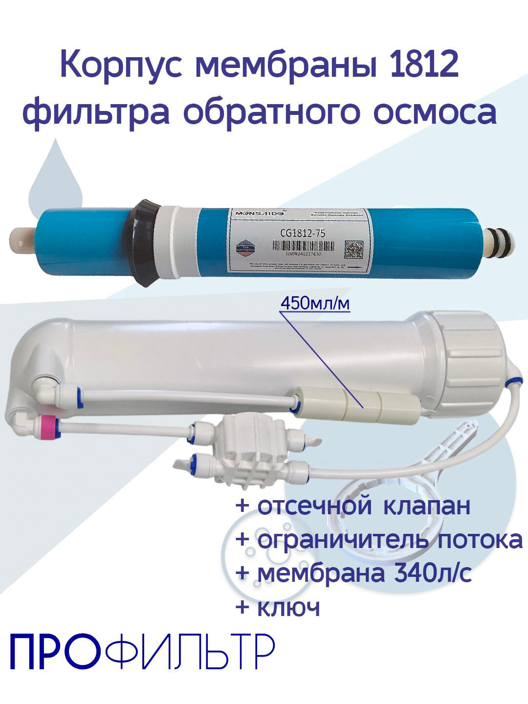 Корпус мембраны 1812 фильтра обратного осмоса + отсечной клапан 450 + ограничитель потока + Мембрана 340л/с + ключ / Фитинги РО: сравнение цен, характеристики, фото, актуальное наличие и цены.