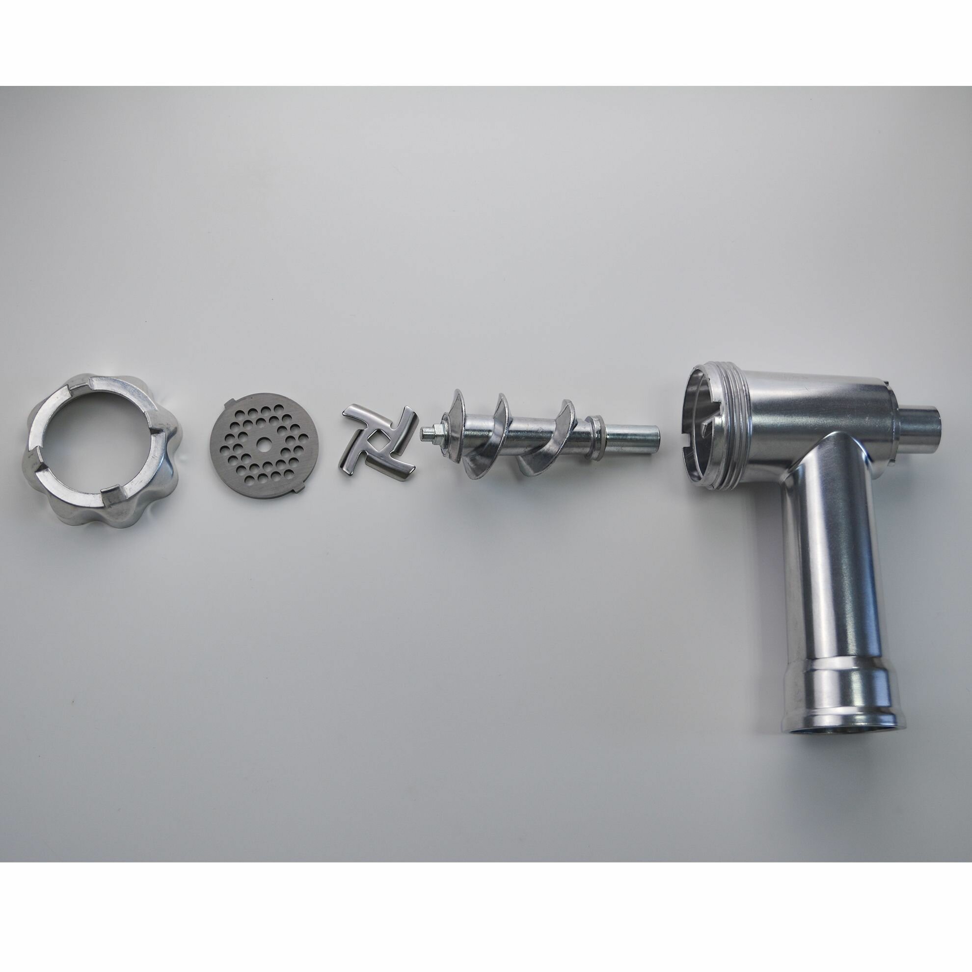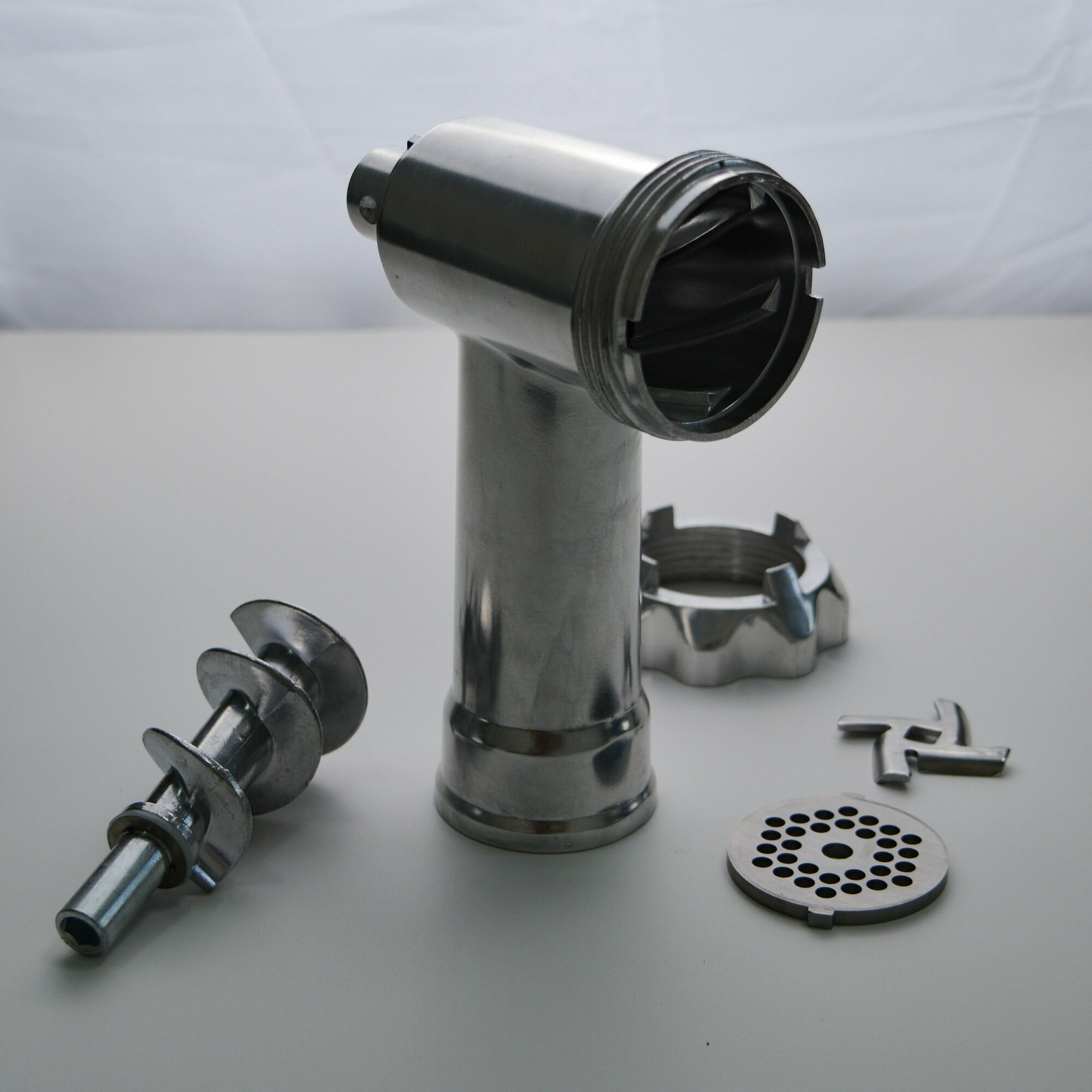 - Корпус для мясорубки, также известный как приемник мяса, является важным компонентом мясорубки, который обеспечивает защиту основных элементов мясорубки, таких как шнеки, ножи и передаточные механизмы. Он также выполняет роль контейнера, предназначенного для сбора измельченного мяса или других ингредиентов в процессе работы мясорубки, обладает прочным креплением и стабильностью шнека, ножей и других компонентов, которые позволяют мясорубке свободно измельчать продукты без случайного возникновения или повреждения элементов. Очистка и уход за корпусом мясорубки обычно просты и легки. Многие корпуса разбираются на отдельные части, которые подлежат очистке после использования.