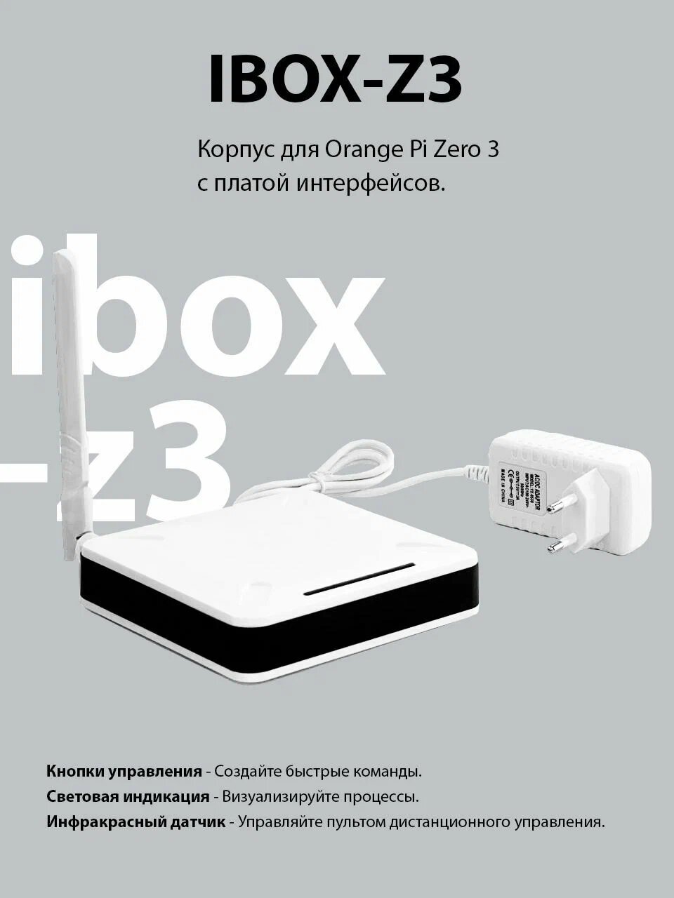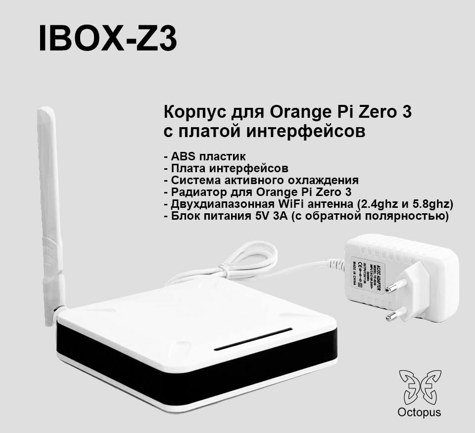 - Главная особенность ibox-z3 — это встроенная плата интерфейсов, которая позволяет подключать практически любые устройства с интерфейсом USB, UART, GPIO внутри корпуса не вынося их наружу. Благодаря такой универсальности вы можете использовать Orange Pi Zero 3 для любых целей: от умного дома и медиацентров до робототехники и промышленных систем управления.