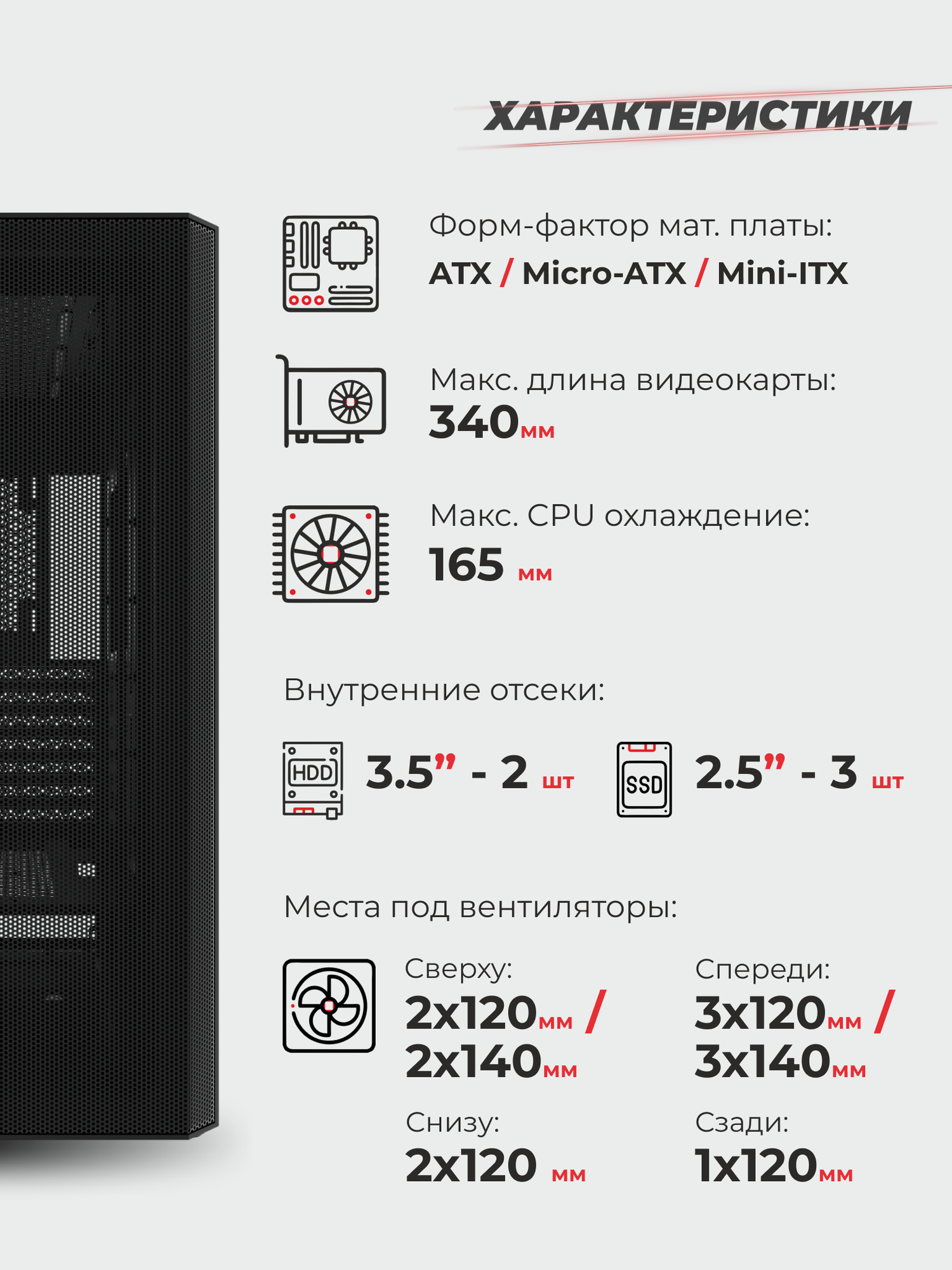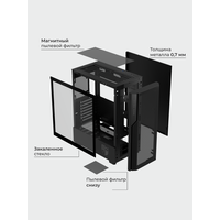 Прозрачные панели из закаленного стекла позволяют продемонстрировать все ваши комплектующие и атмосферу игры, а качественные материалы обеспечивают долговечность и надежность.
